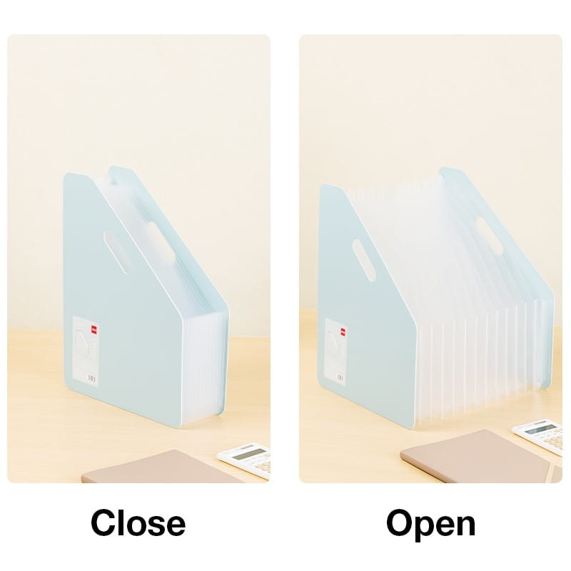 Ułatwia porządkowanie i szybkie sortowanie dokumentów w formacie A4 dzięki harmonijkowej, rozszerzanej konstrukcji z wieloma przegródkami. Wolnostojąca forma wspiera wygodne przechowywanie papierów na biurku lub w archiwum, bez konieczności odkładania teczki na płasko.