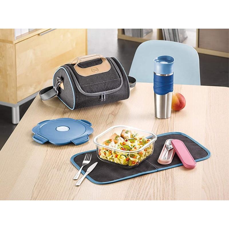 3 częściowy zestaw sztućców od Maped Picnik, to doskonałe rozwiązanie dla każdego, kto zabiera ze sobą posiłek do pracy, do szkoły, na pieszą wędrówkę lub piknik. Sztućce zapakowane są w wygodny plastikowy pojemnik, który pozwala utrzymać je zawsze w czystości. Są lekkie i w kompaktowym rozmiarze, swobodnie zmieszczą się w pudełku obiadowym Maped Picnik Concept Adult. Brudne można zamknąć w pudełku obiadowym lub od kompletu i zabezpieczyć inne rzeczy przed zabrudzeniem. Są bardzo poręczne i doskonale leżą w dłoni. Nóż z łatwością poradzi sobie z krojeniem jedzenia. Sztućce wykonane są ze stali, dzięki czemu nadają się do kontaktu z żywnością i są odporne na korozje. Stal zapewnia im również elegancję i wysoki komfort użytkowania nie pozostawia wrażenia jak przy jedzeniu plastikowym jednorazówkami. Kolor pudelka niebieski. Wymiary: 16 cm x 4 cm x 2 cm, BPA free, Stainless steel