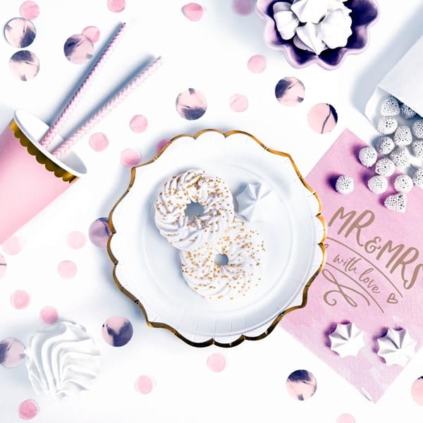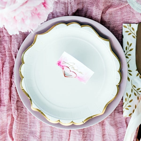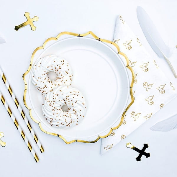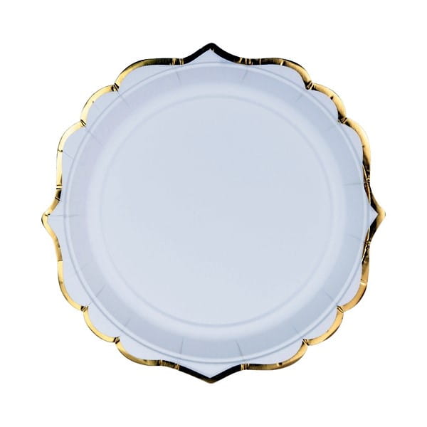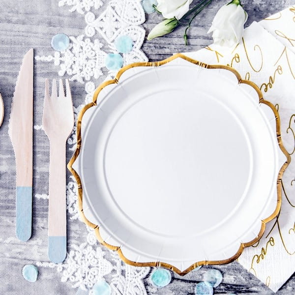 Talerze papierowe PARTYDECO ze złotym metalizowanym brzegiem białe