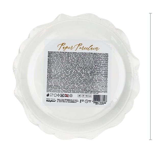 Talerze papierowe 18,5cm PARTYDECO ze złotym metalizowanym brzegiem białe 6szt. /TPP30-008/