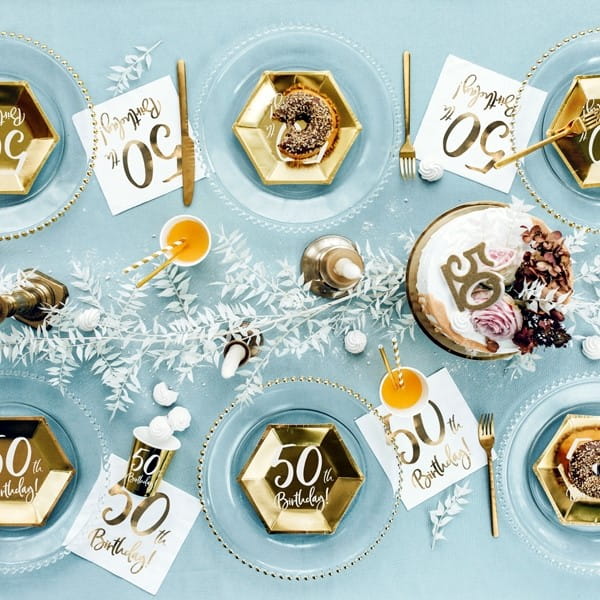 - Napis "50th Birthday!" dodaje talerzykom personalizacji i podkreśla istotną rocznicę.