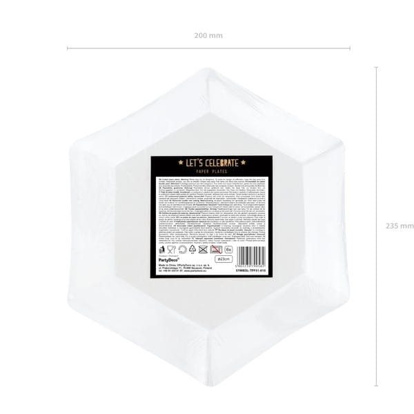 Talerze papierowe PARTYDECO LETS'S CELEBRATE w kształcie sześciokąta