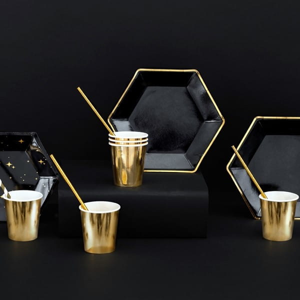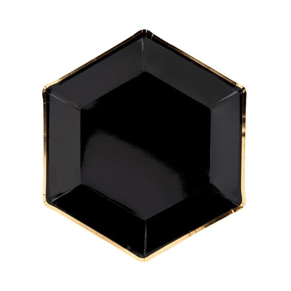 Talerze papierowe 23cm PARTYDECO LETS'S CELEBRATE w kształcie sześciokąta z metalicznym złotym brzegiem czarne 6szt. /TPP31-010/