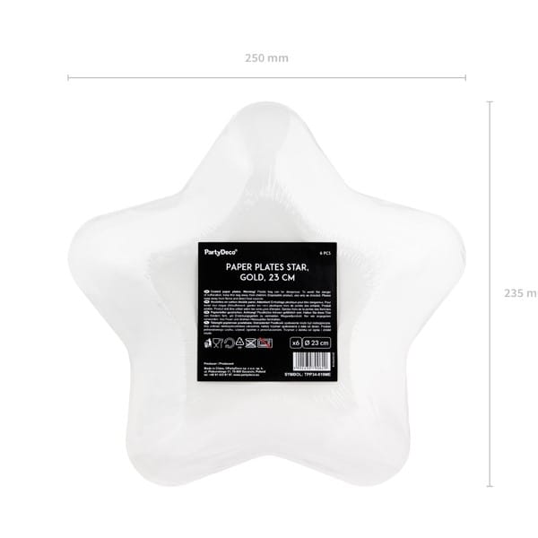 Talerze papierowe 23cm PARTYDECO w kształcie gwiazdki metalizowane złote 6szt. /TPP34-019ME/