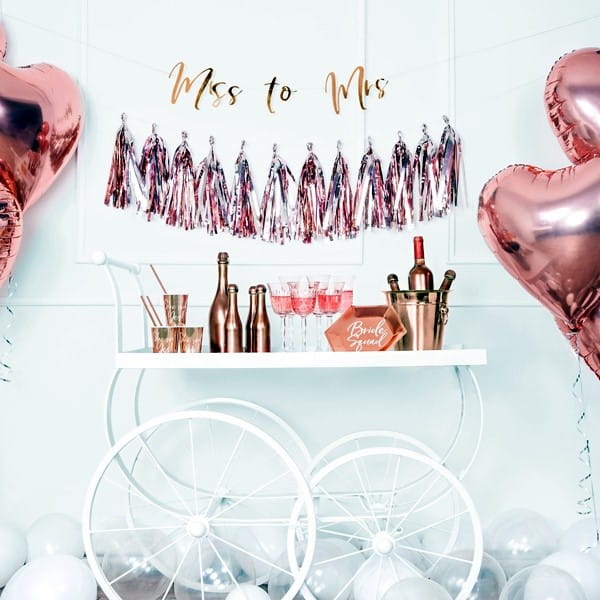 - Talerzyk papierowy w kolorze różowego złota z białym napisem "Bride squad" to idealny wybór dla Twojego wieczoru panieńskiego