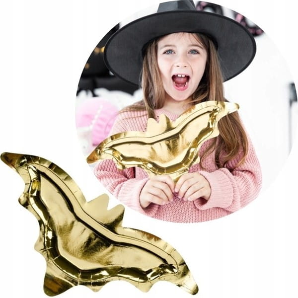 Talerze papierowe 37,5x18,5m PARTYDECO w kształcie nietoperza lustrzane złote 6szt.