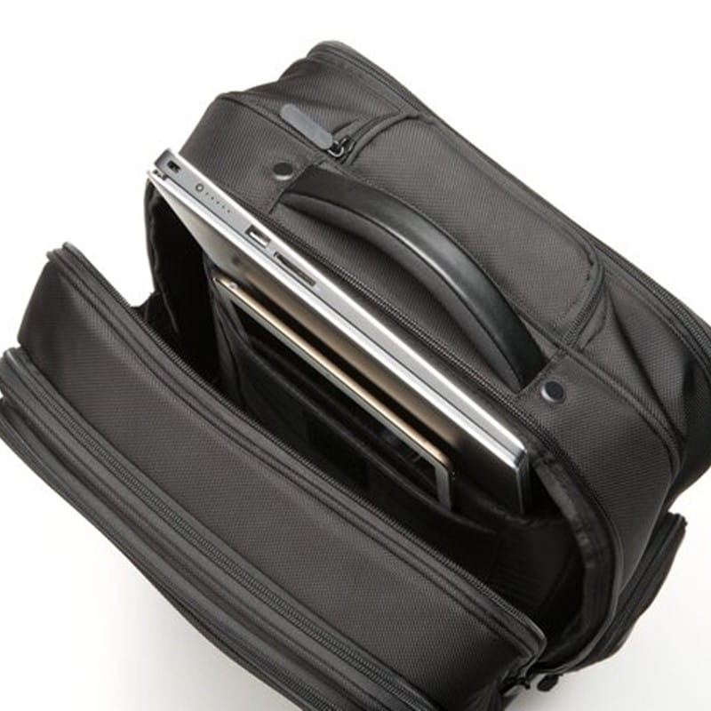 - Komora na laptopa z zabezpieczeniem na wypadek upadku stanowi dodatkową warstwę wewnętrznej ochrony pomiędzy komorą na laptopa i stelażem torby.