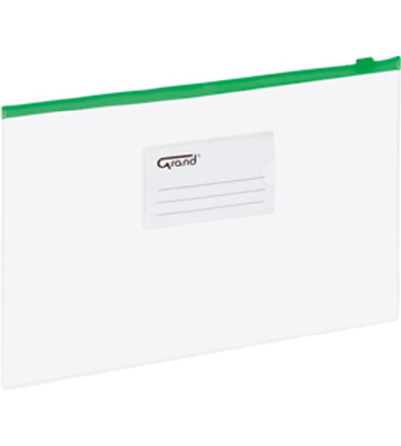 Torebka/saszetka/teczka A5 z zielonym suwakiem i identyfikatorem GRAND EC007B TRANSPARENTNA 1szt. /120-1473/