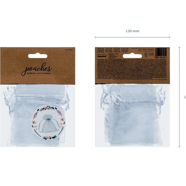 Woreczki z organzy 7,5x10cm PARTYDECO BIAŁE 10szt. /WRG5-008-10/