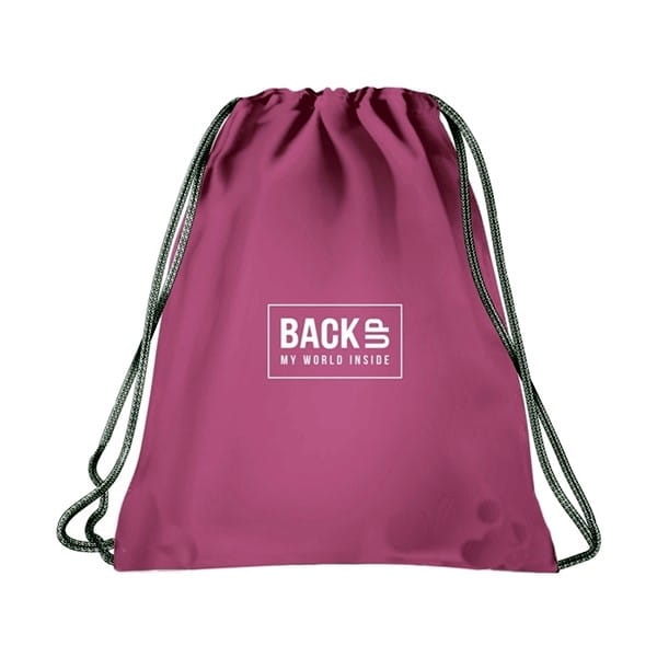 - Pastelowy róż z dodatkiem szarych sznurków i białego logo BackUP - to połączenie doskonałe
