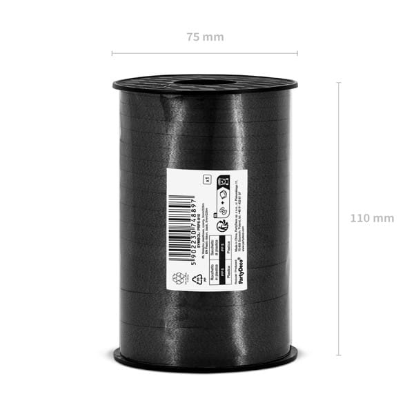 Wstążka plastikowa 5mm x 225m PARTYDECO czarna 1szt. /PRP5-010/