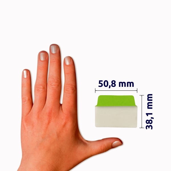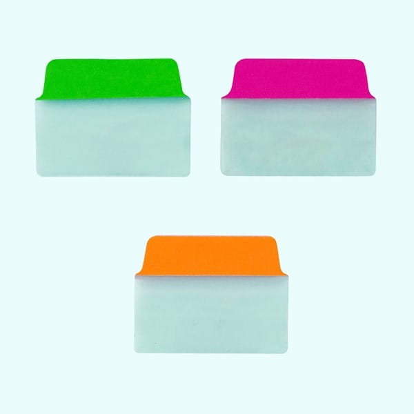 - Przezroczyste Ultra Tabs 74753 z neonową zakładką, w formacie 50,8 x 38,1 mm
