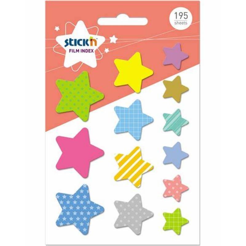 Zakładki indeksujące kształty 32x32mm 26x26mm 17x17mm PP GWIAZDKI mix kolorów 195szt. /21763/