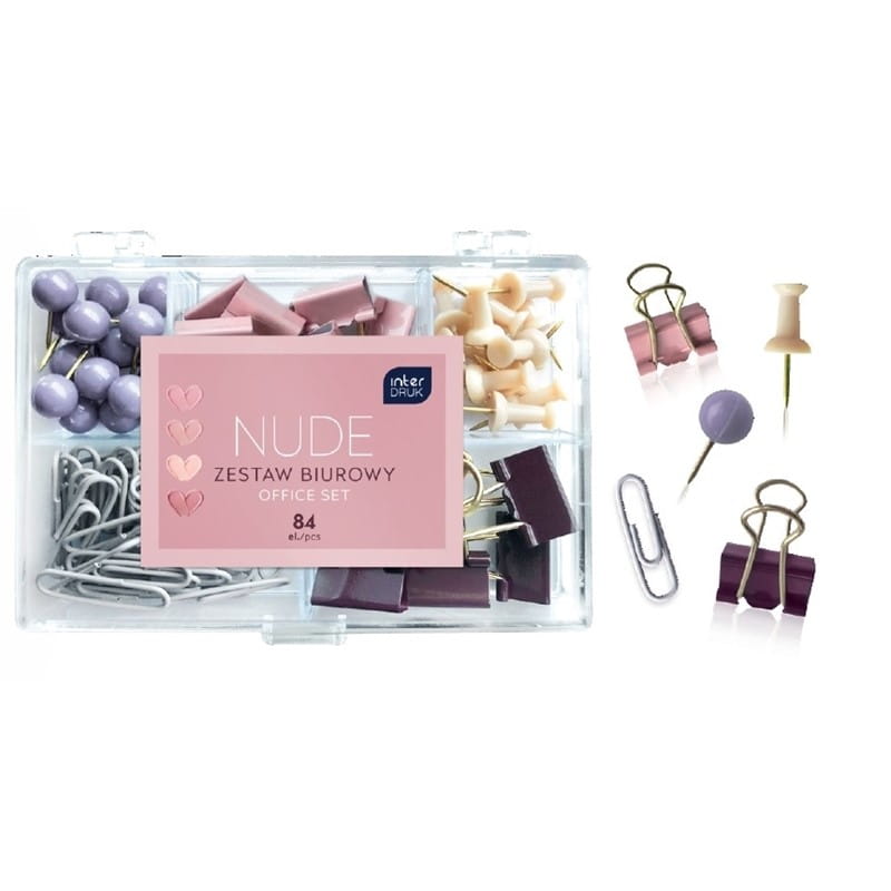 Zestaw biurowy pinezki klipy spinacze INTERDRUK nude mix 84szt. /IZESBIUNUDE/