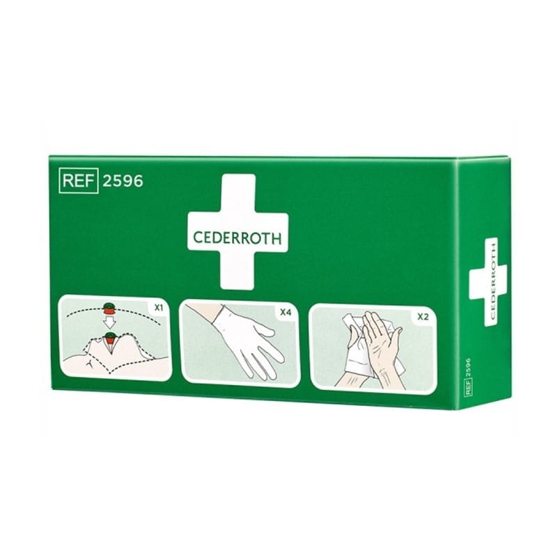 - Zestaw ochronny Cederroth REF 2596 został stworzony w celu wsparcia procesu udzielania pierwszej pomocy