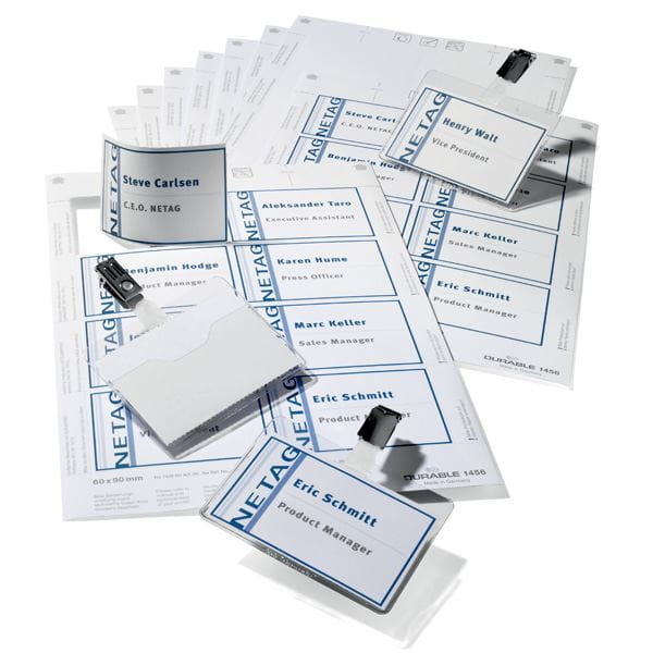 - W skład zestawu wchodzi: 20 identyfikatoroacute;w z klipsem, 4 arkusze z etykietami (8 identyfikatoroacute;w/arkusz)