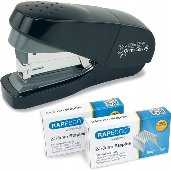 Zszywacz do 35 kartek na zszywki 24/6 RAPESCO ECO FLAT CLINCH z powłoką antybakteryjną + zszywki czaarny /1688/