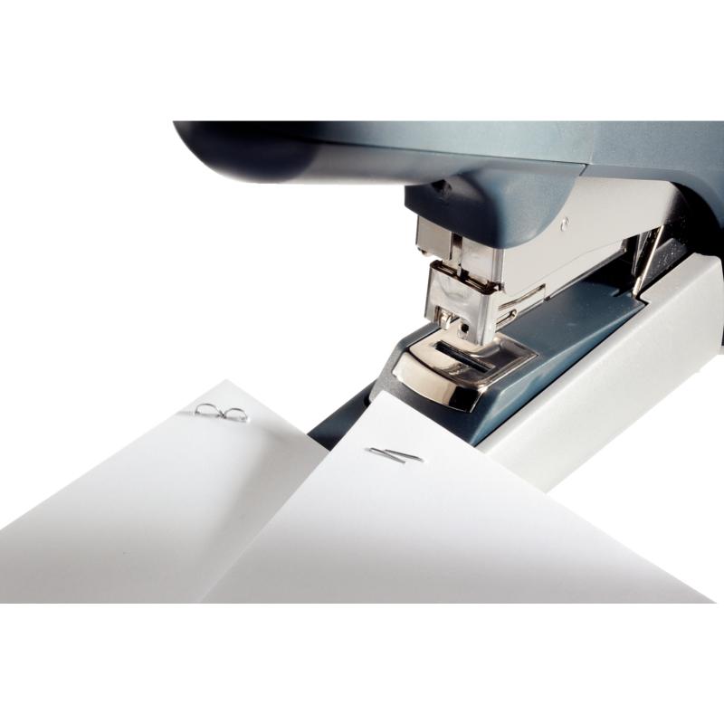 • Systemem płaskiego zaginania zszywek, zmniejsza o 30% objętość zszytych dokumentów, dzięki, czemu więcej dokumentów zmieścisz w segregatorze.